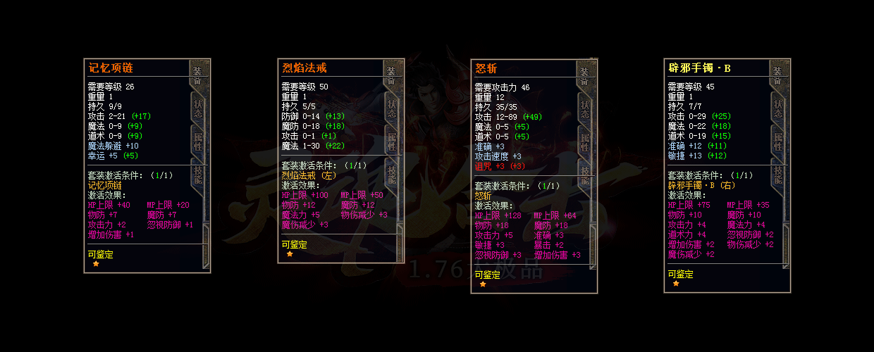 - 【游戏介绍】:1.76灵魂极品合击-剑甲极品上限50点、首饰极品上限25点
